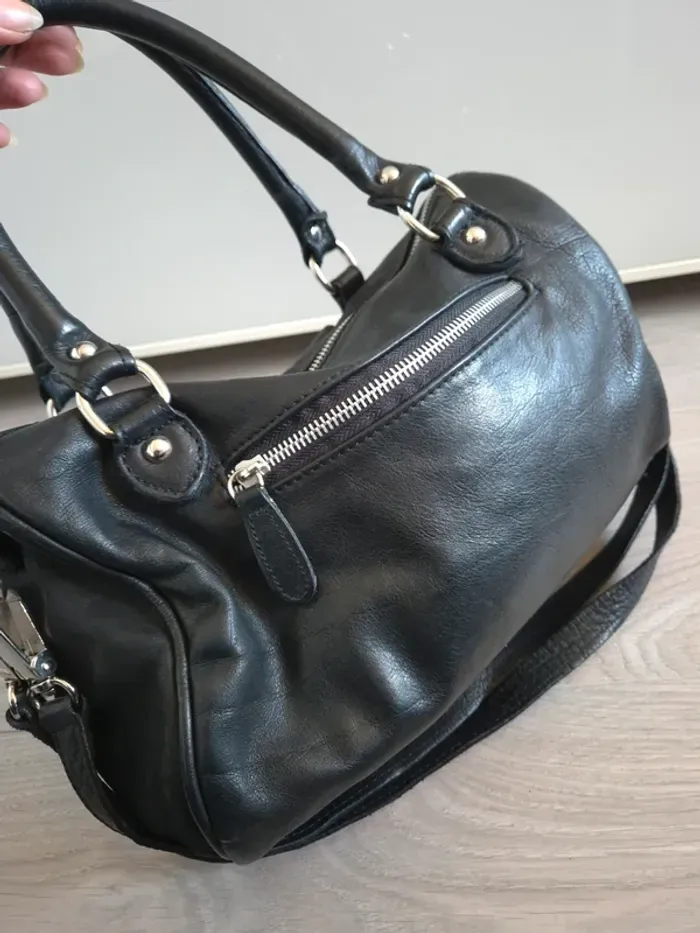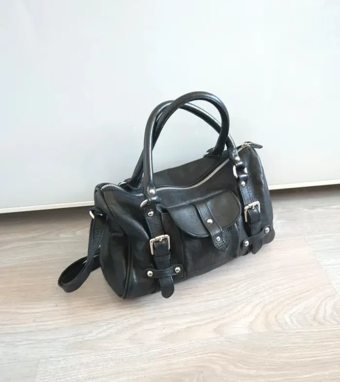 Superbe sac à main en cuir, forme bowling, anse + petite bandoulière, poches extérieurs, impeccable, ➡️Longueur anse 13 cm ➡️ Dimension 32 cm x 21 cm x 11 cm ⭐ Excellent état ✈Envoi rapide des colis 💗 Abonnez vous à mon profil, nombreux articles ajoutés régulièrement ! 🌸 Tapez Laetitresors pour voir mes annonces #laetitresors_sac #sac #main #noir #the #genuine #leather #bowling #cuir #petit #arrondi #anse #bandoulière #laetitresors