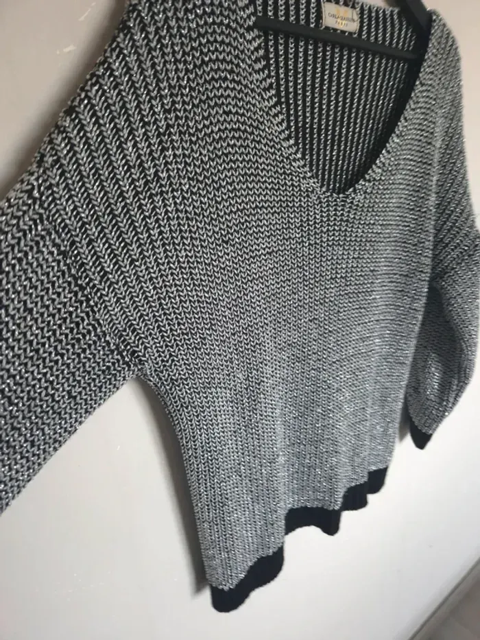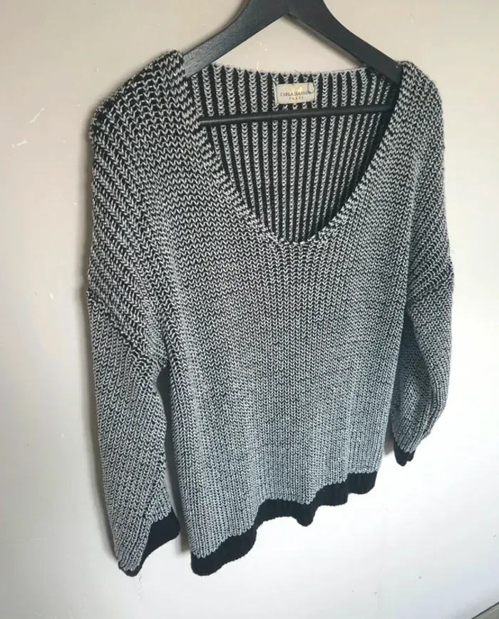 Pull gris et noir, maille aspect brillante, col v très doux, impeccable ➡️Largeur à plat sous les bras 50 cm ➡️Longueur 60 cm ➡️ 100 % acrylique ⭐ Excellent état ✈Envoi rapide des colis 💗 Abonnez vous à mon profil, nombreux articles ajoutés régulièrement ! 🌸 Tapez Laetitresors pour voir mes annonces #laetitresors_pull38 #pull #carla #giannini #gris #noir #brillant #col #v #acrylique #laetitresors