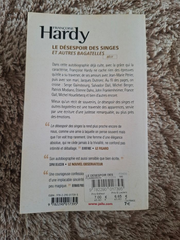 Autobiographie de Françoise Hardy Le désespoir des singes en bon état