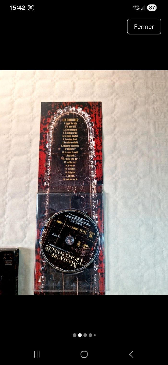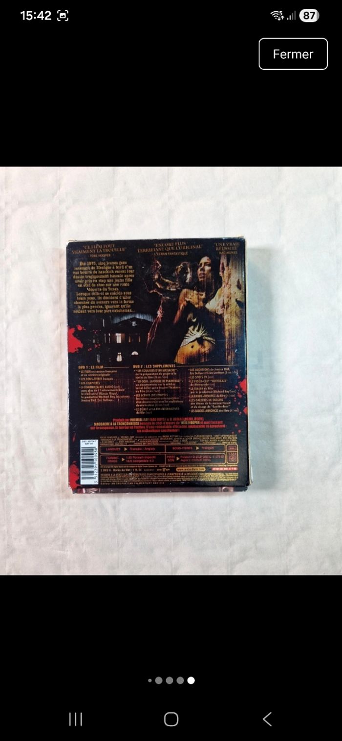 Bonjour, ​Je propose le coffret collector 2 DVD du film "Massacre à la Tronçonneuse" (remake de 2003), édité par Metropolitan. ​Détails de l'objet : ​Contenu : Édition collector comprenant le disque du film et le disque de suppléments dans un boîtier au dépliage spécifique (digipack) avec son fourreau cartonné. ​État physique : Le fourreau cartonné présente des traces d'usure sur les bords et les coins. L'intérieur du boîtier et les disques sont en bon état. ​Complétude : Complet avec ses 2 disques et son étui d'origine. ​ #MassacreALaTronconneuse #Horreur #Slasher #Collector #DVD #Cinema #Metropolitan