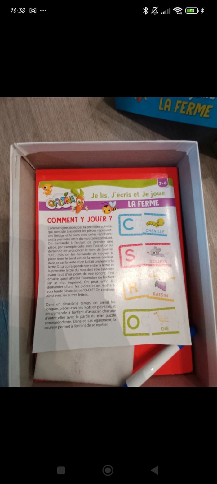 Jeu je lis, j'écris et je joue, idéal pour les enfants qui rentre a l'école pour apprendre les lettres, a écrire et les mots, le jeux est complet