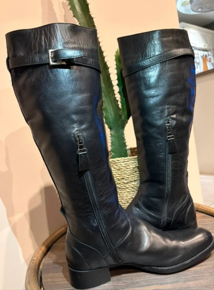 Je vends cette magnifique paire de bottes de la maison française Heschung. Une qualité de fabrication exceptionnelle pour un style intemporel et élégant. Marque : Heschung (Fabriqué en France/Alsace) Taille : 37,5 (taille parfaitement) Matière : Cuir de veau pleine fleur, souple et très résistant. Détails : Modèle type cavalière avec bride montante et fermeture éclair latérale. Semelle gomme de haute qualité (idéale pour l'isolation et l'adhérence). État : Très bon état. Le cuir a été entretenu avec soin. Quelques plis d'aisance naturels qui témoignent de la souplesse du cuir. Pourquoi craquer ? C'est un investissement. Les bottes Heschung sont connues pour leur confort immédiat et leur incroyable longévité. Neuves, elles coûtent généralement entre 450€ et 600€. Une occasion rare à saisir !