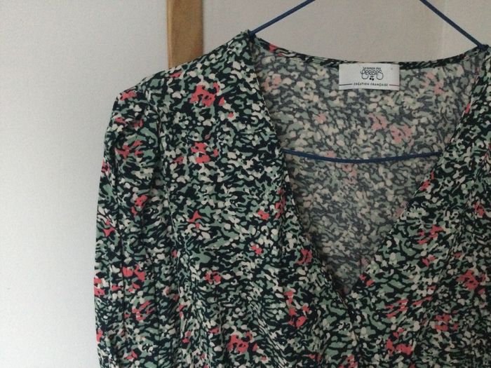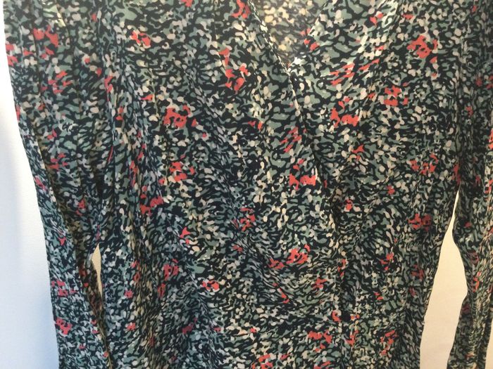 Cache cœur, volant en bas, petites fronces sur les épaules . Longueur dos 62cm. Fermetures par pression et bouton. Très joli porté.