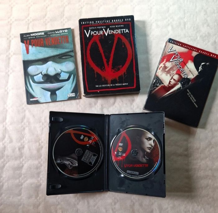 Bonjour, Je propose cette édition prestige de "V pour Vendetta" comprenant le double DVD collector ainsi qu'un livret BD. ​Détails de l'objet : Contenu : L'ensemble se compose d'un fourreau cartonné, d'un boîtier Amaray contenant deux disques (le film et les bonus) et d'un livret illustré par Alan Moore et David Lloyd (Éditions Delcourt / Vertigo). État physique : Très bon état général. Complétude : Complet avec son fourreau, son boîtier double disque et son livret d'accompagnement. ​ #VforVendetta #DVD #Collector #AlanMoore #Cinema #Comics