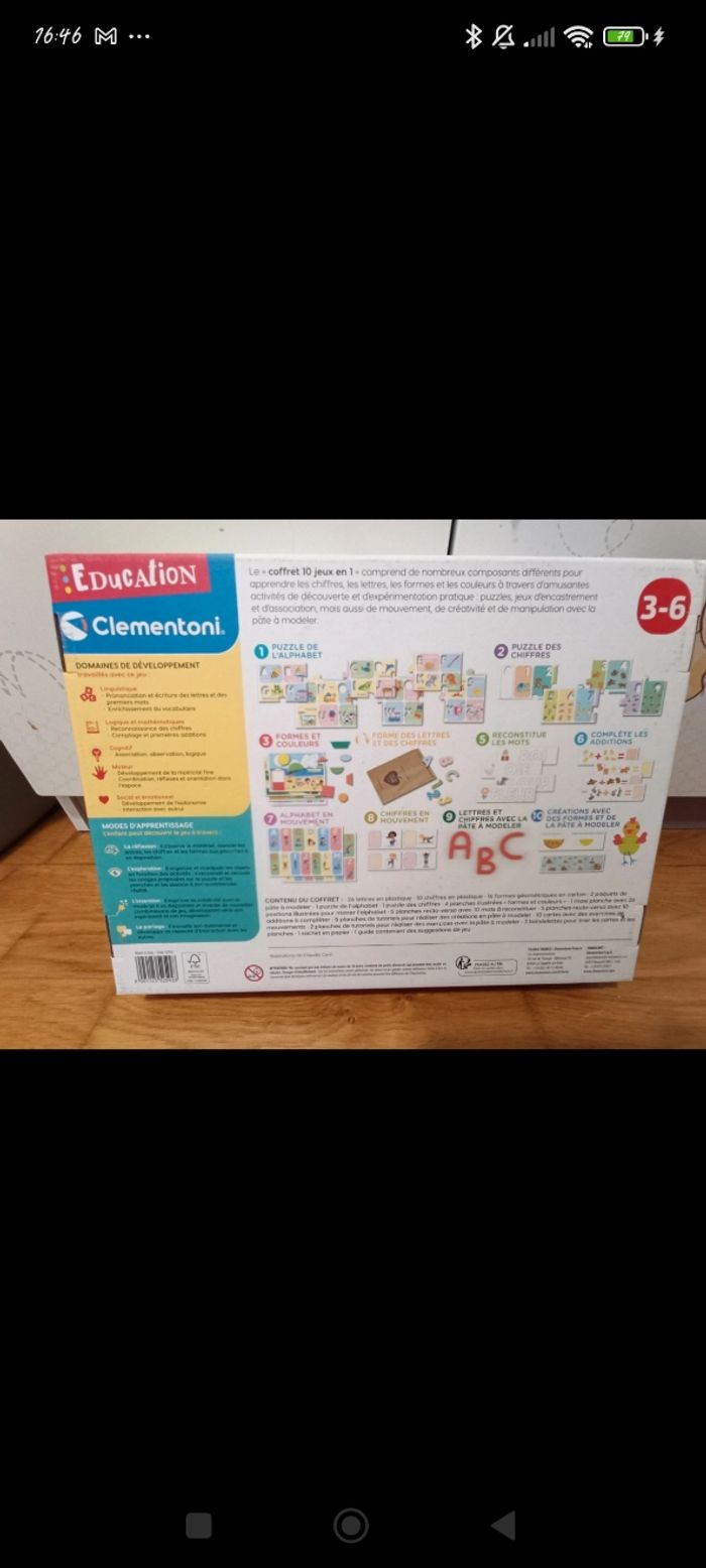 Jeu de société 10 jeux en 1, idéal pour apprendre à l'enfant les lettres, les chiffres, les formes et pleins d'autres choses Le jeu est complet