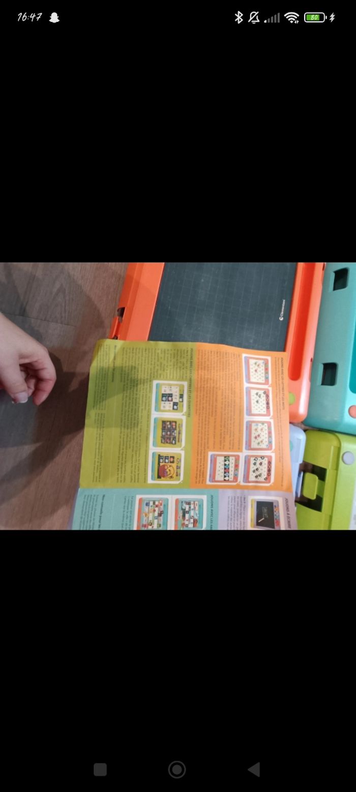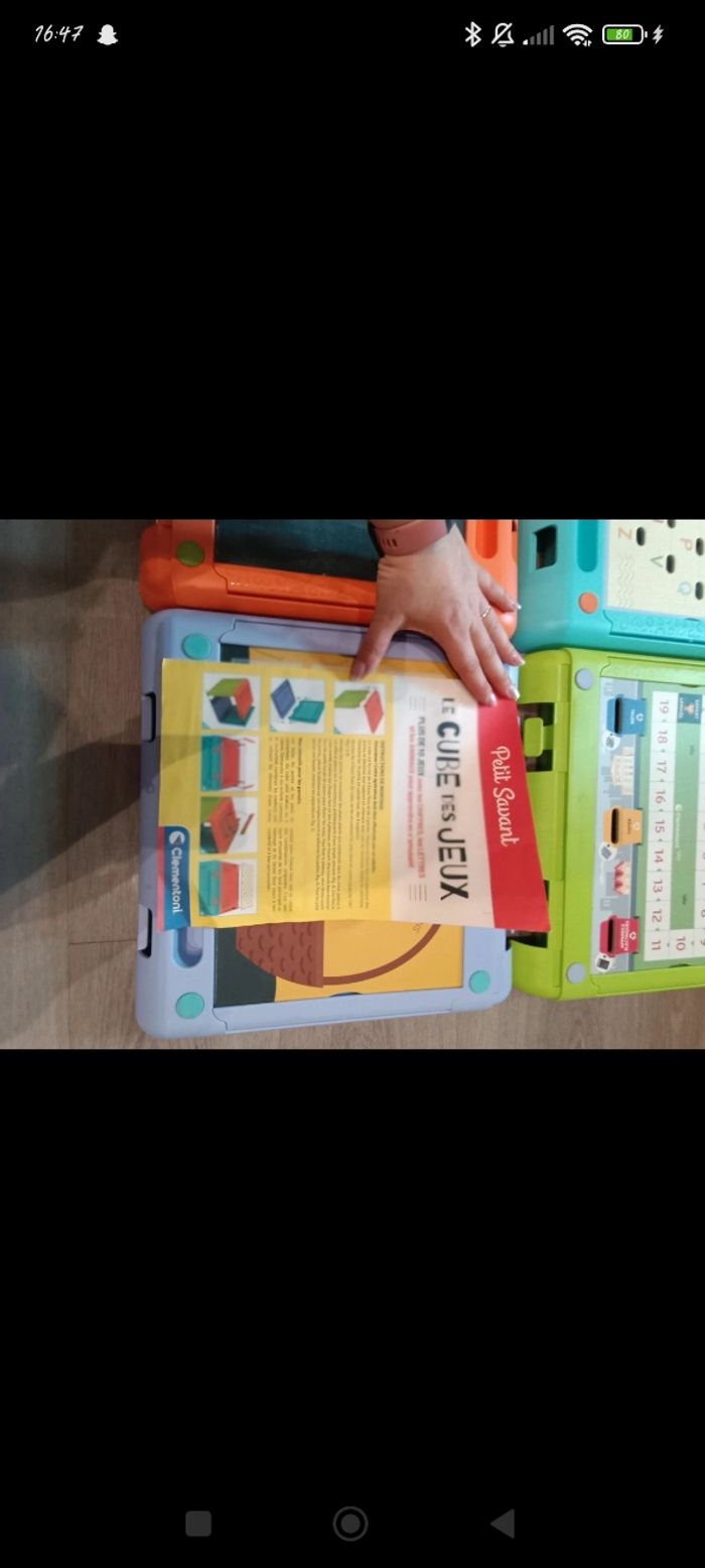Cube des jeux avec pas mal d'activités a faire dessus, les plaquettes peuvent être retourné pour faire d'autres activités (quelque traces de feutres mais rien de bien méchant