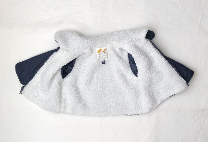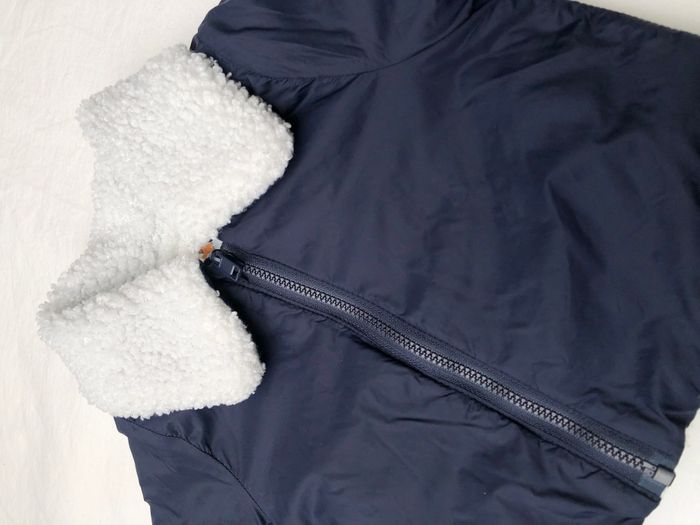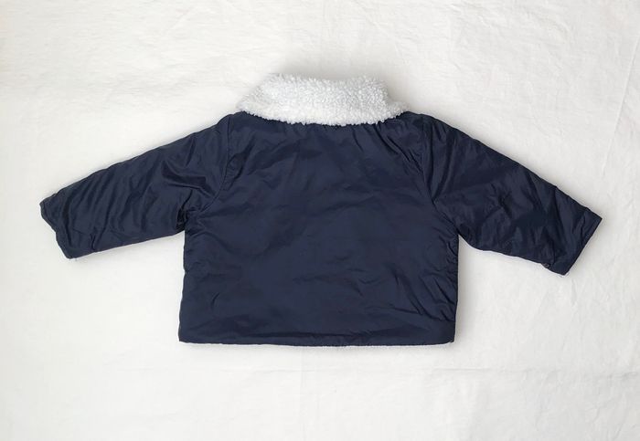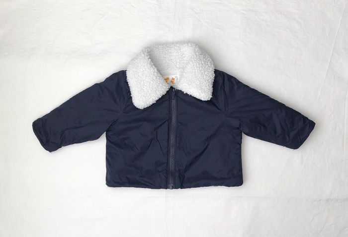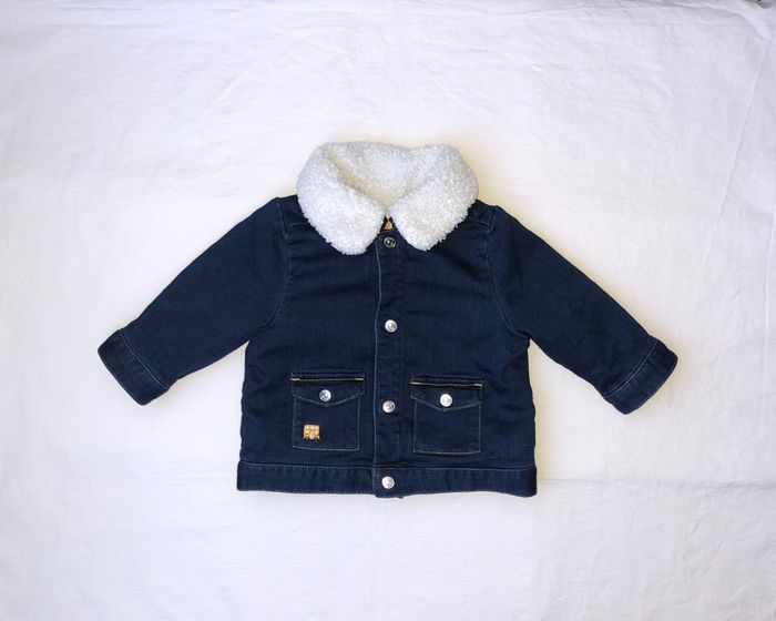 Manteau, veste 3 en 1 Sergent Major, Taille 6 mois/ 68 cm, Mi-saison, Etiquette composition coupée, mais le blouson en jean contient de l’élasthanne. Composé d’une veste en jean bleu brut et d’un blouson/ d’une doublure marine avec un intérieur en sherpa/ moumoute blanche. Possibilité de porter les éléments séparément, ou ensemble pour former un manteau plus épais. Fermeture du blouson en jean par pressions, et de la doublure par zip (si portée seule). Des boutons sont présents pour attacher les manches entre elles et pour maintenir les cols. En excellent état, sans trou ni tache. 🌸 Vous aimez cet article ? N’oubliez pas de visiter le reste de mon dressing en filtrant les tailles.