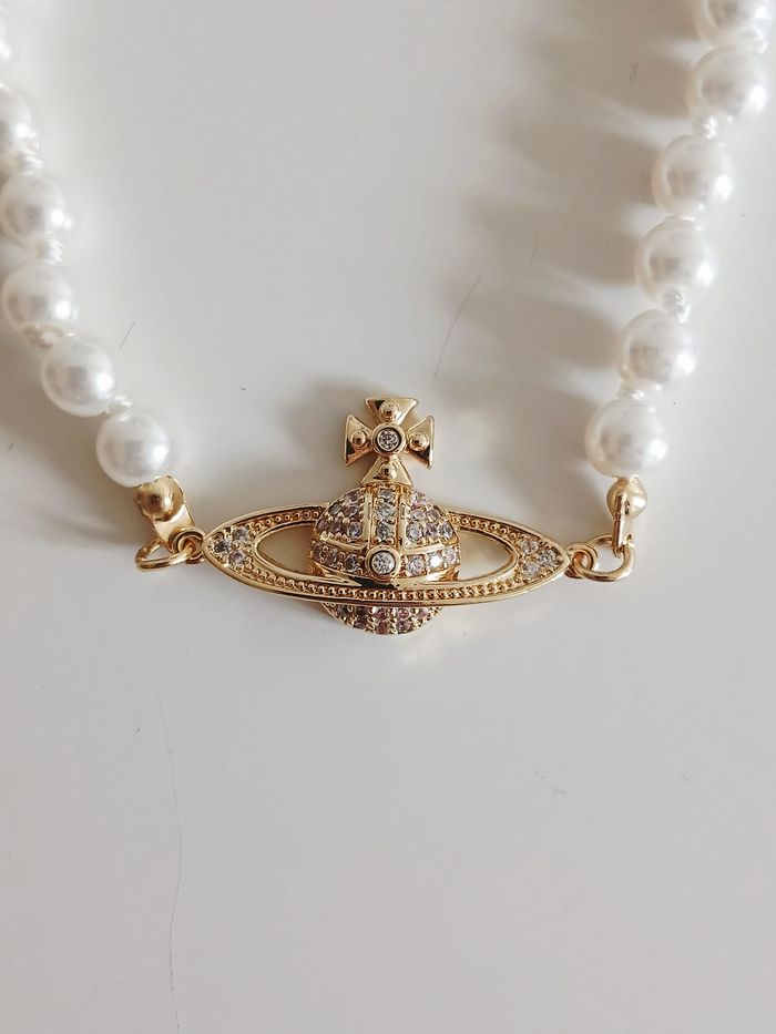 Bracelet perlé blanc avec médaillon Orb doré ✨ Joli bracelet composé de perles rondes blanches à l’aspect nacré Au centre, on retrouve un médaillon Orb doré délicatement serti de petits strass, qui capte la lumière et donne du relief à l’ensemble. Détails : Perles blanches effet nacré Pendentif Orb doré orné de strass Fermoir mousqueton avec chaînette d’extension Taille ajustable et facile à mettre Longueur totale : environ 17 à 18 cm (réglable) Dimension du médaillon : environ 1,7 à 1,9 cm