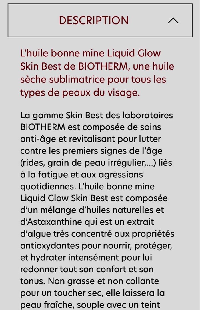 Huile bonne mine biotherm