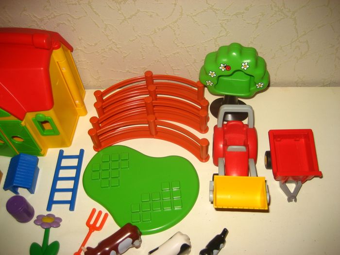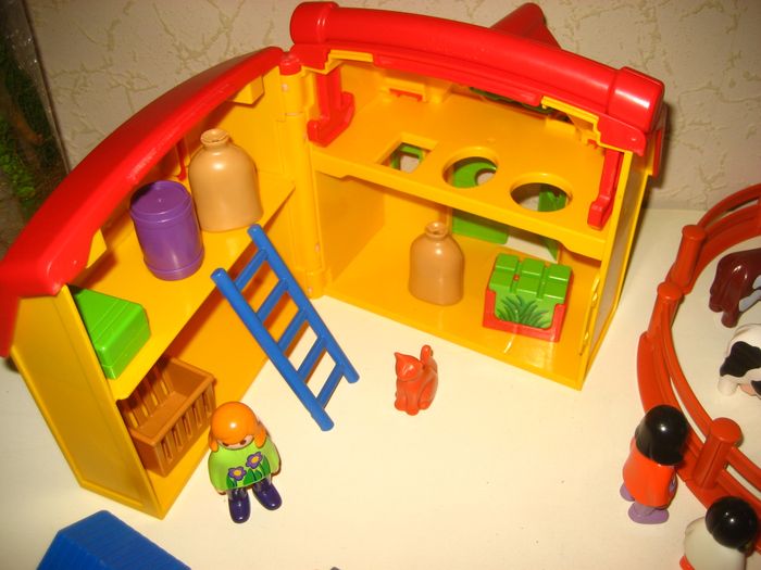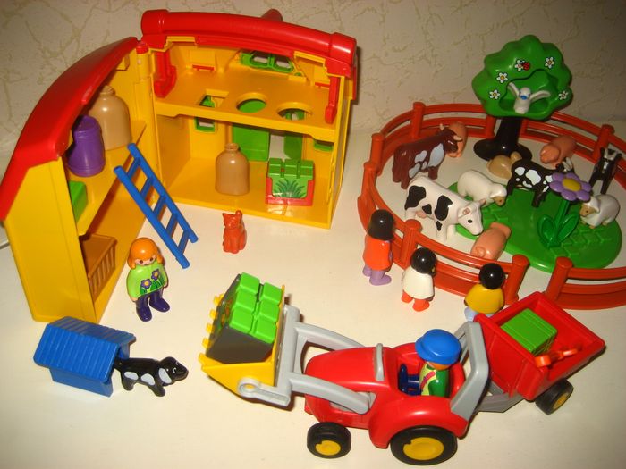 Très beau lot playmobil 123 "découverte de la ferme"ferme transportable,animaux,accessoires etc...Le tout en très bon etat et prix ferme