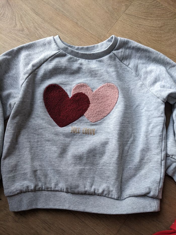 Sweat gros avec motifs 2 coeurs taille 6 ans mais taille petit!! Ensemble sweat motif coeur manches courtes et robe 5 ans Vertbaudet Pas de taches ni trou