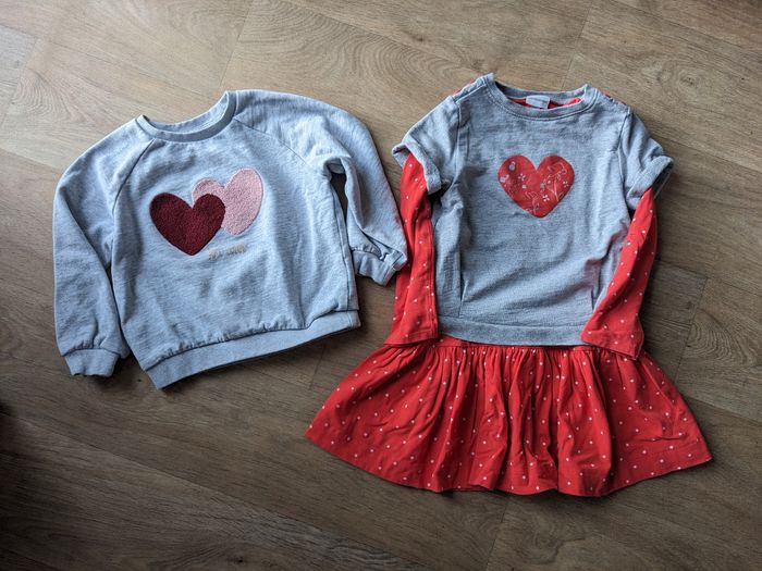 Lot vetements fille 5 ans sweats et robe coeurs Vertbaudet  - photo numéro 1