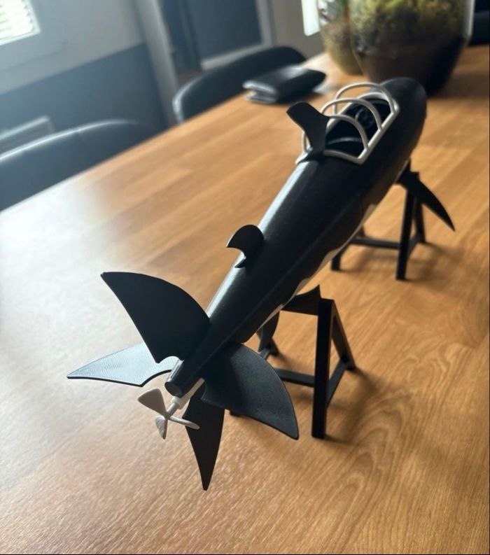 Sous marin , impression 3D 38 cm Assemblé poncé vernis . N’hésitez pas si vous avez des questions.