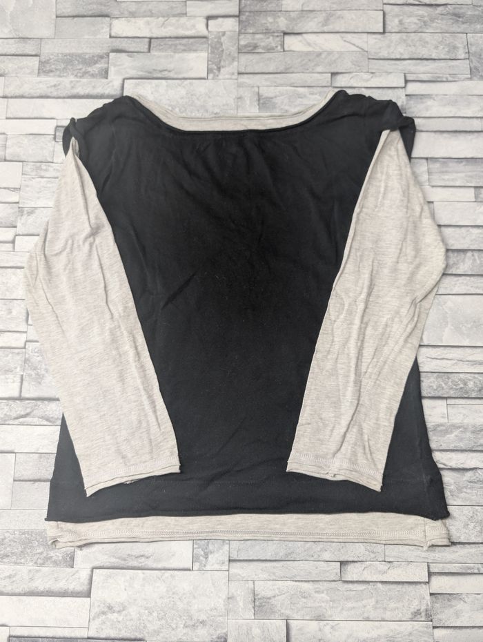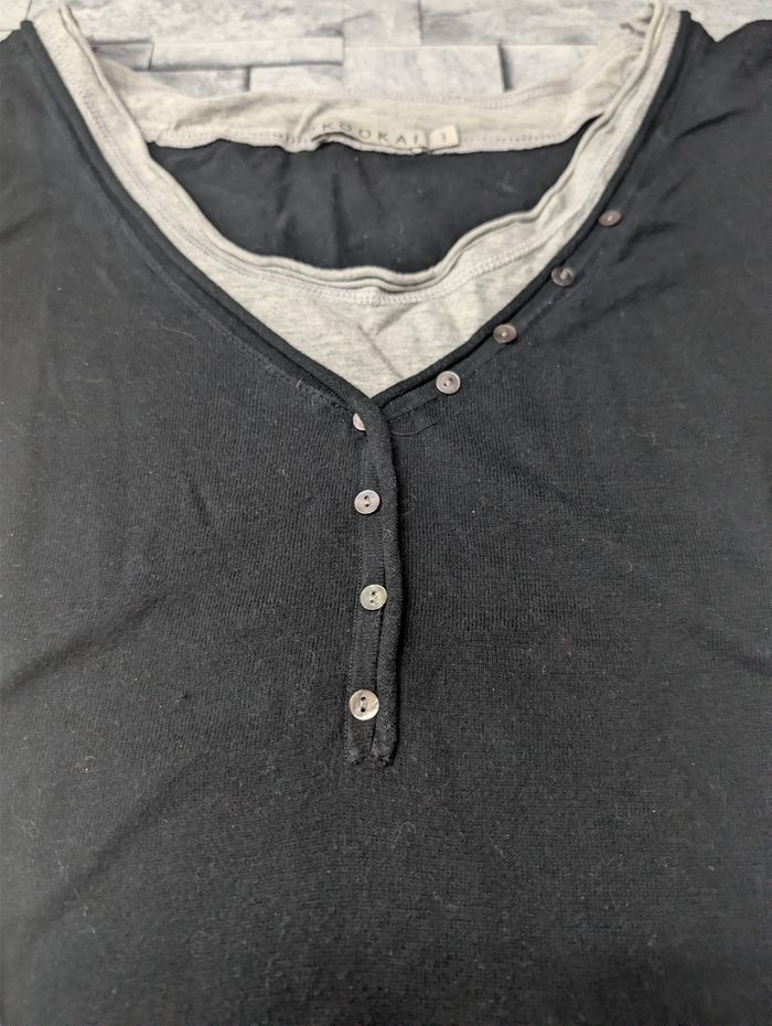 Top 2-en-1 KOOKAÏ Bicolore Noir & Gris - T3 (40/42) - Boutons Nacre - photo numéro 5