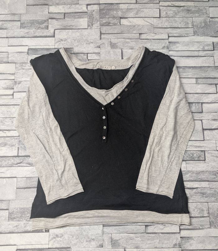 Top 2-en-1 KOOKAÏ Bicolore Noir & Gris - T3 (40/42) - Boutons Nacre - photo numéro 2