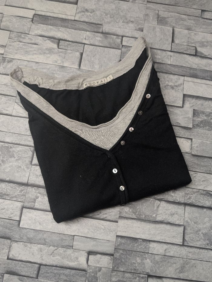 Top 2-en-1 KOOKAÏ Bicolore Noir & Gris - T3 (40/42) - Boutons Nacre - photo numéro 4