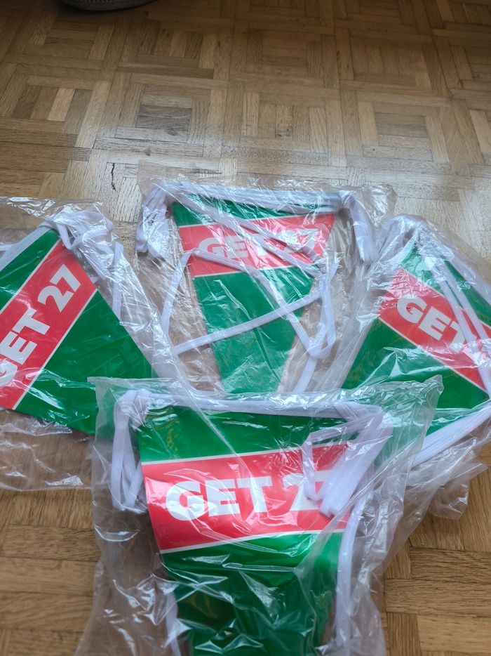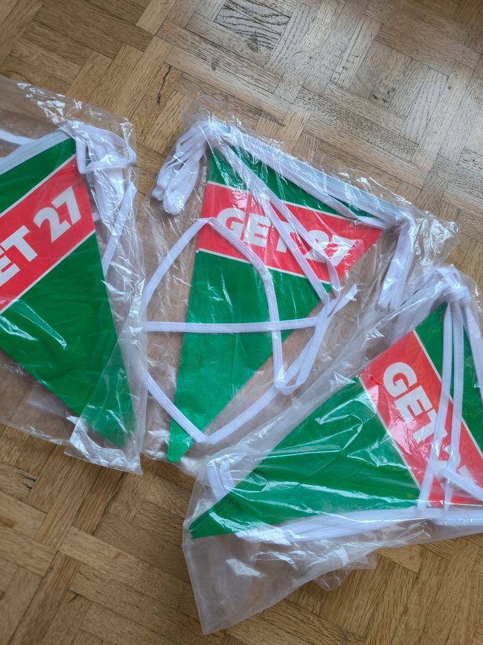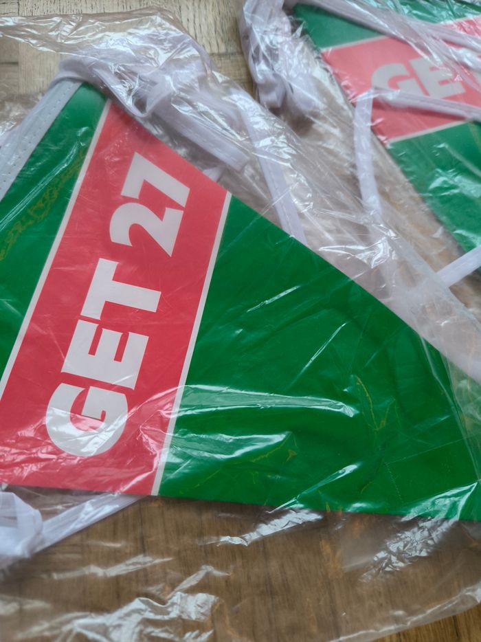 Lot de 4 guirlandes fanions Get27. Fanions plastique
