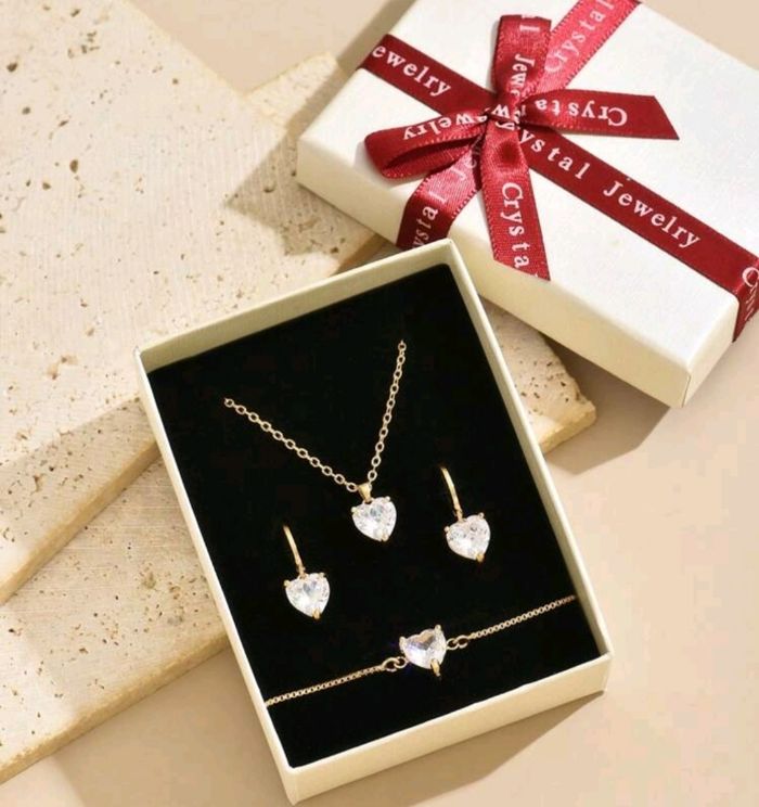 Jamai porté neuf dans la boîte Parrure 3 pièces en acier inoxydable couleur or pierre blanche. Idéal pour faire #bijouxfemme