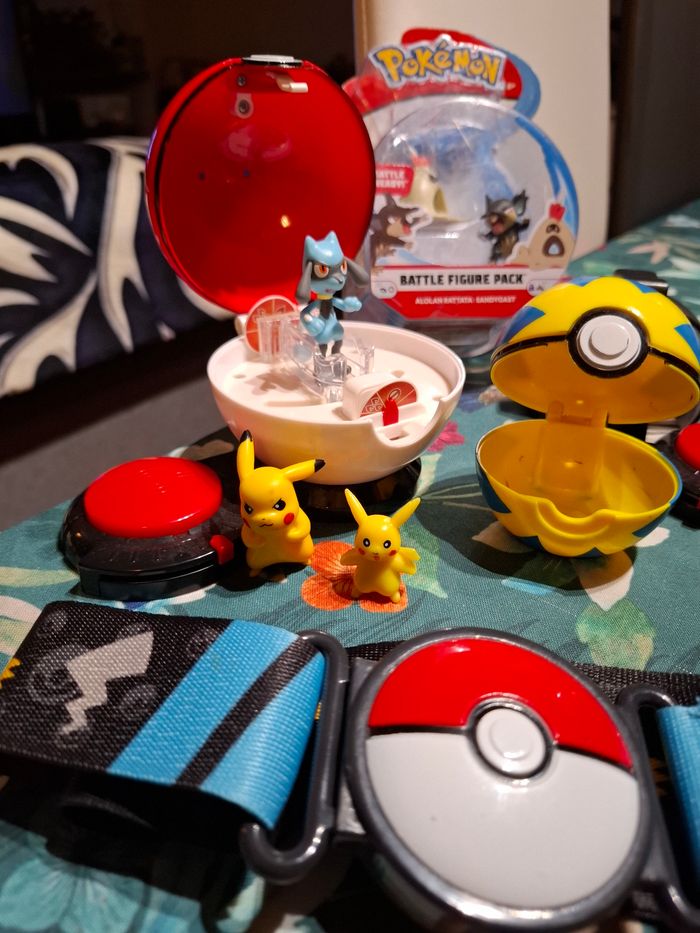Magnifique lot de pokeball toupie avec figurine ceinture