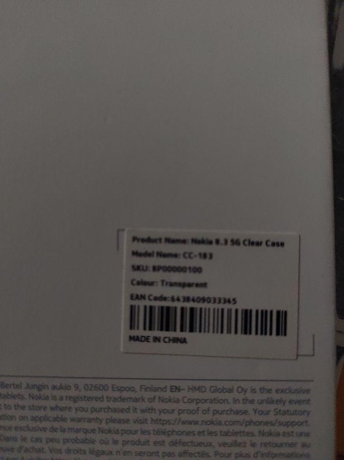 Vend une coque Nokia 8.3 5 G neuf jamais utilisée dans sa boîte d'origine