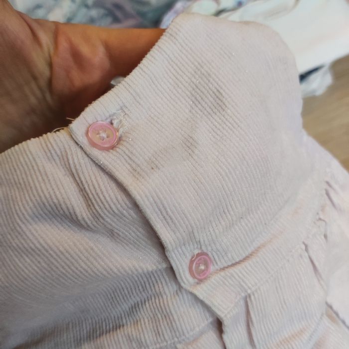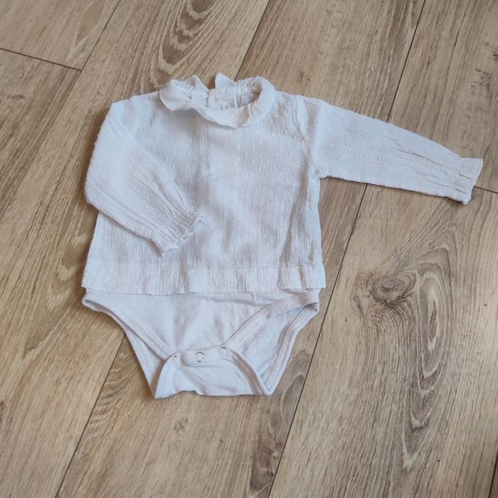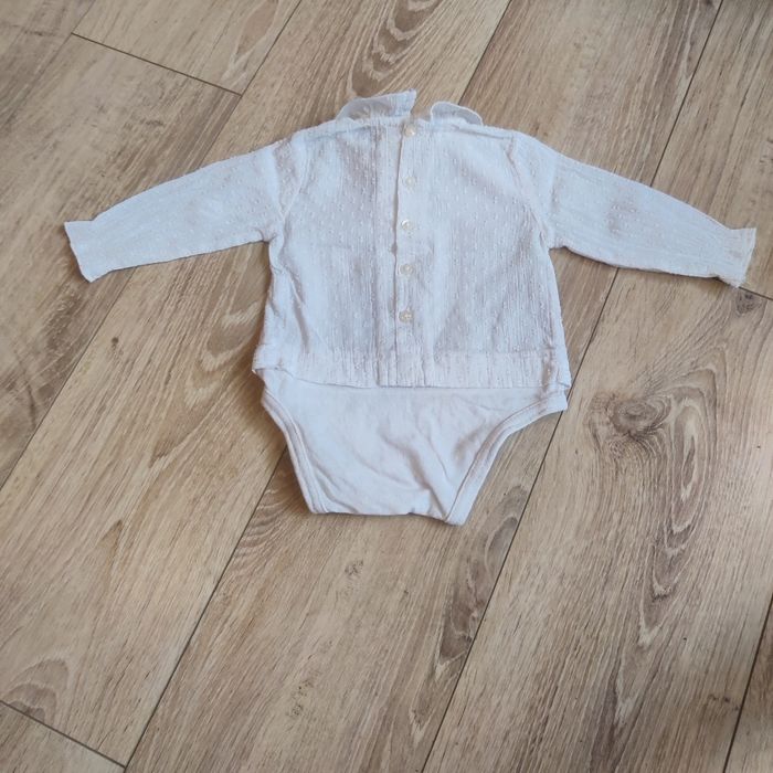Joli lot composé de: - une robe épaisse en velours côtelé et fil doré. Fermeture dans le dos. Marque Obaibi. - un body effet blouse en tissu plumetis fin. Pressions à l'entre-jambe et fermeture dans le dos par boutons. Marque Zara. Maison non fumeur. Linge entretenu avec lessive écologique sans parfum et adoucissant au vinaigre blanc dilué. Envoi des colis les vendredis et samedis en général.