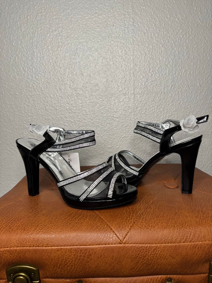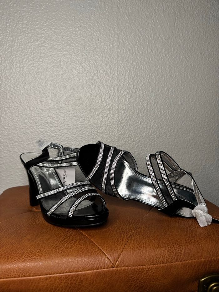 Sandales noires à brides strass – Malien Élégantes sandales de la marque Malien, avec plusieurs brides fines ornées de strass qui apportent une touche brillante et féminine. Leur talon confortable et leur maintien à la cheville offrent une belle silhouette tout en restant faciles à porter, idéales pour une tenue habillée ou une soirée. • Marque : Malien • Pointure : 36 • État : Neuves, uniquement portées pour les photos • Défauts : Aucun • Boîte : Fournie (boîte d’origine) Chaque paire est nettoyée et désinfectée avant chaque envoi. 📦 Envoi soigné 🚚 Expédition rapide sous 48h