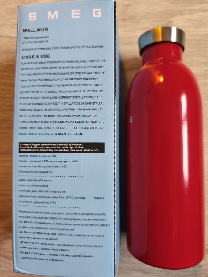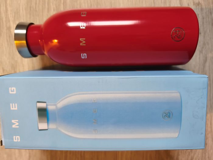 Neuve jamais servie, dans son emballage. Gourde smeg bouteille d'eau isotherme pour le chaud et le froid . 500ml . Rouge