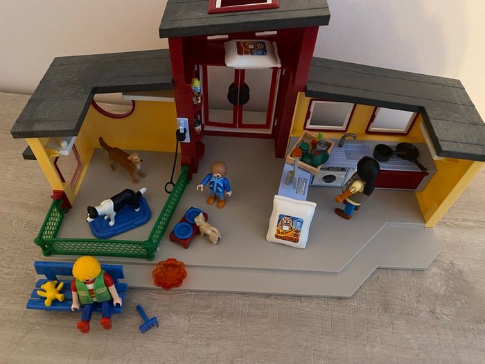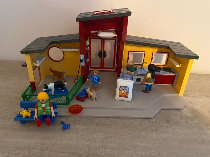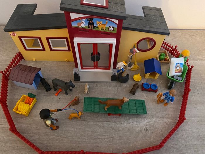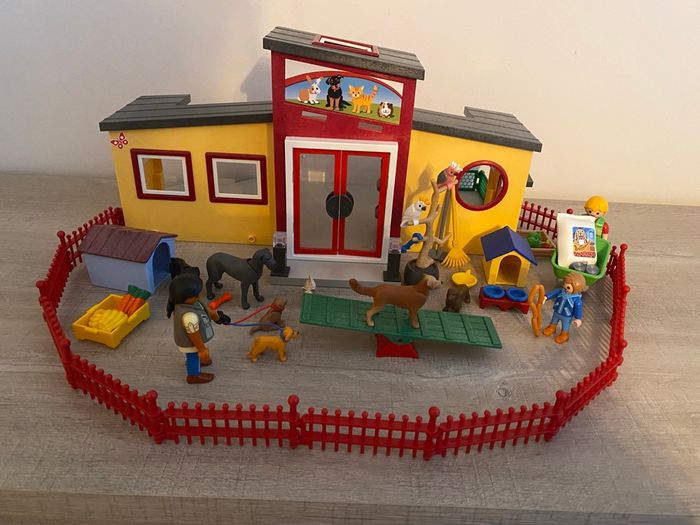 coffret playmobil #71599 la grande pension des animaux avec 3 personnages, des chiens, des perroquets, la pension, des enclos pour mettre les chiens dehors, de la nourriture, jouets et plein d’autres accessoires en super état malheureusement sans boîte prix neuf 57€