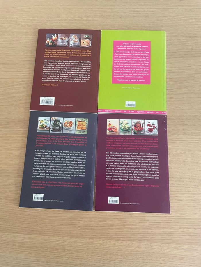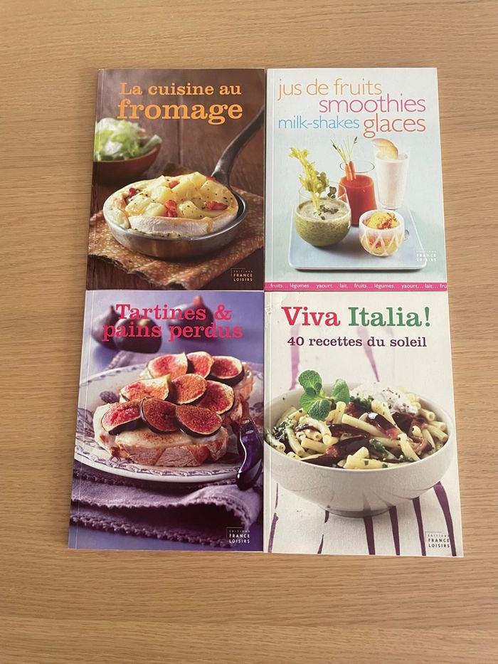 💛 LOTS 4 livres cuisinés - Fromage - Tartines & pains perdus - Viva Italia - Jus , smoothies - 1 un peu abîmé voir photo - N* 9782298041224