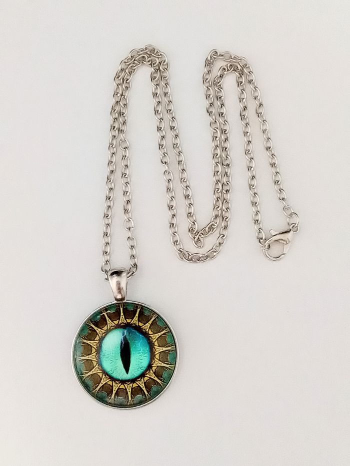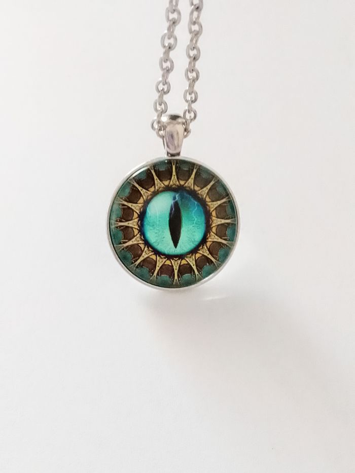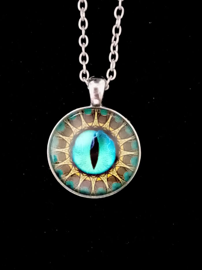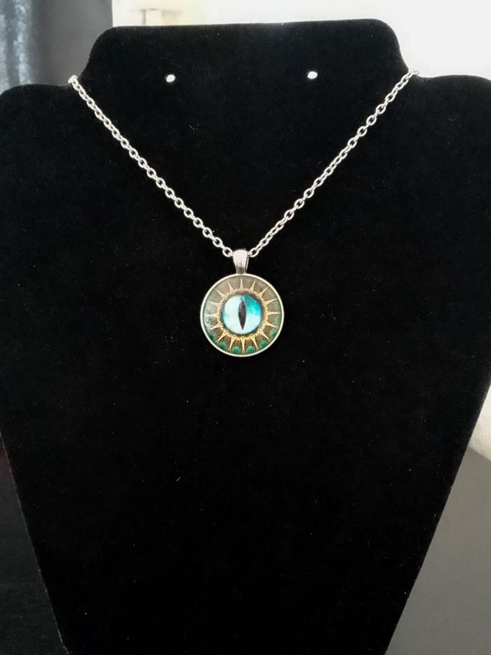 Chaîne + pendentif celtique. Motif : oeil, pendentif en verre cabochon. (celtique, protection, spirituel, bohème, idéal cadeau) DESCRIPTIF : Couleur : bleu, turquoise. Taille chaîne : 50 cm Diamètre pendentif : 2,8 cm L * 2,8 cm H Envoi rapide et soigné.