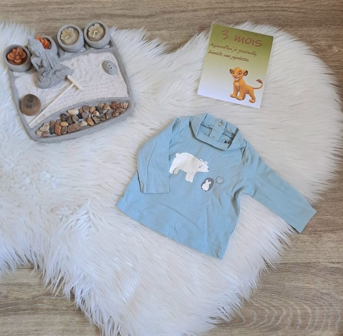 #3moiskyeran 🍬 Sous pull en très bon état. Taille 3 mois. #souspull #3mois #garçon #bleu #npo