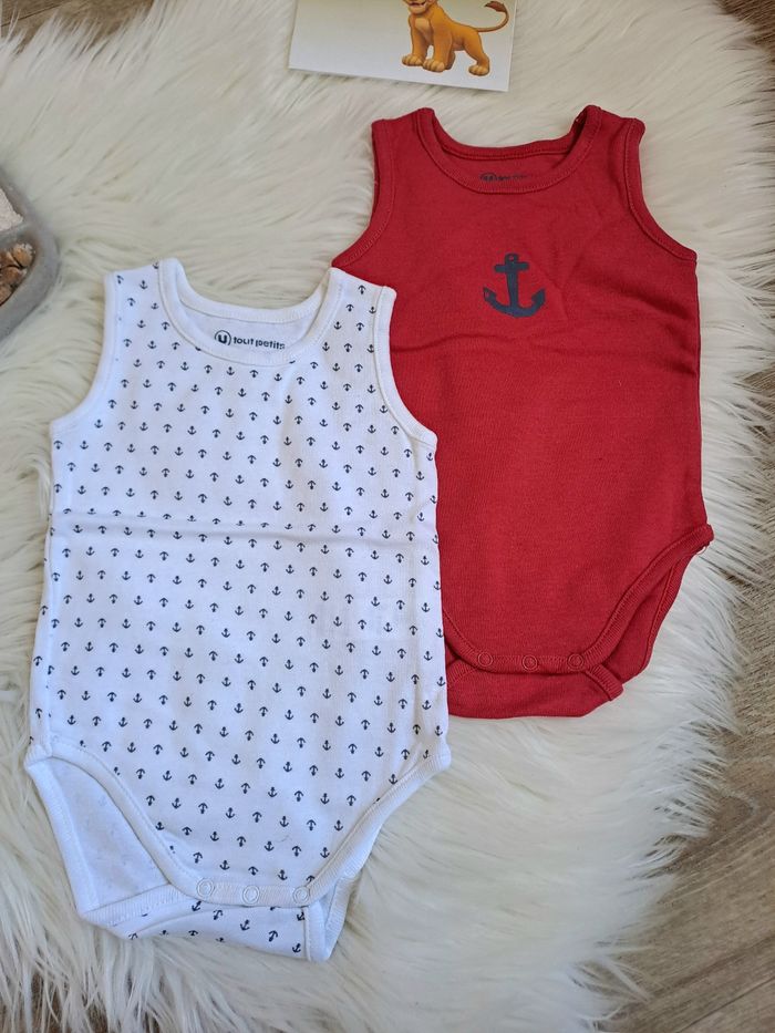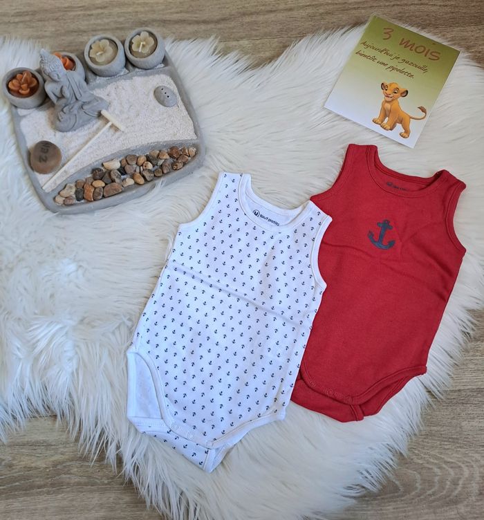 #3moiskyeran 🍬 Lot de 2 bodies été en parfait état. Taille 3 mois. #bodies #3mois #garçon #rouge #blanc #utoutpetits