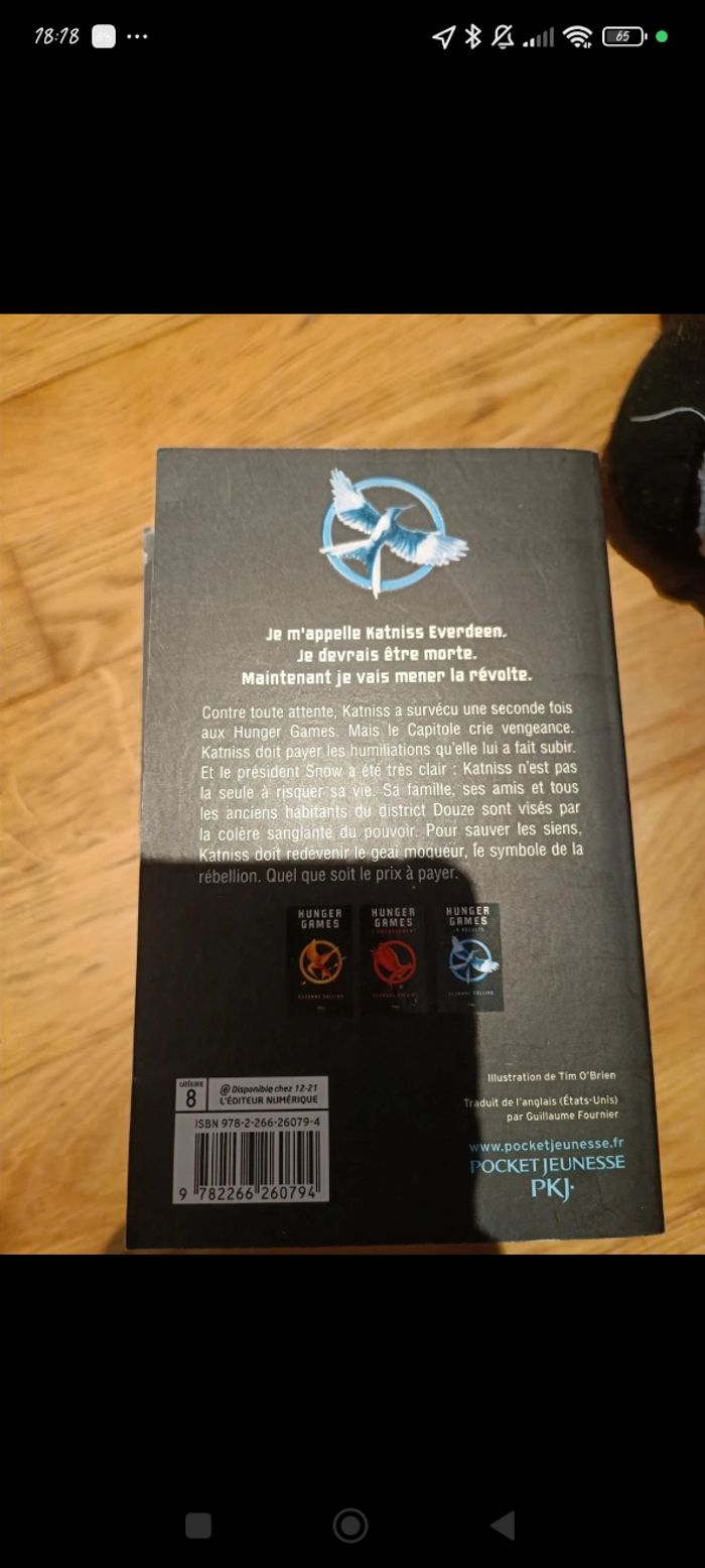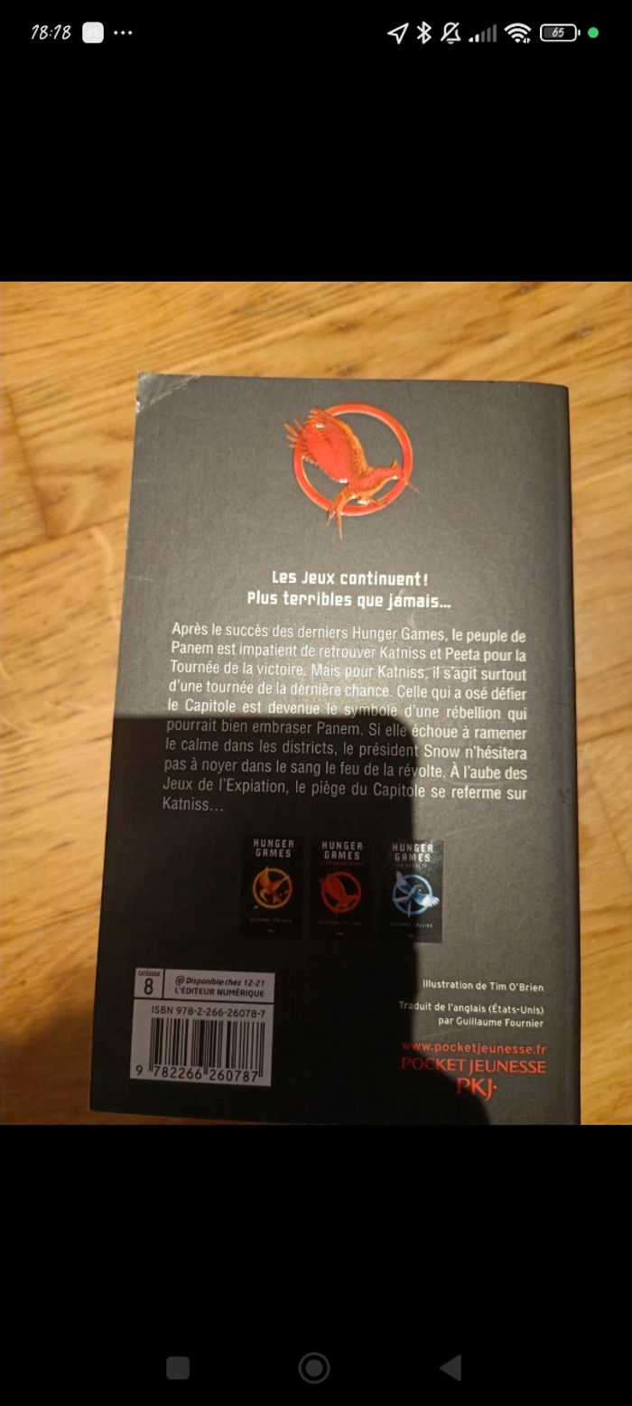 Livre de Suzanne Collins "hunger games, l'embrasement, la révolte" en très bon état Je vends le lot entier