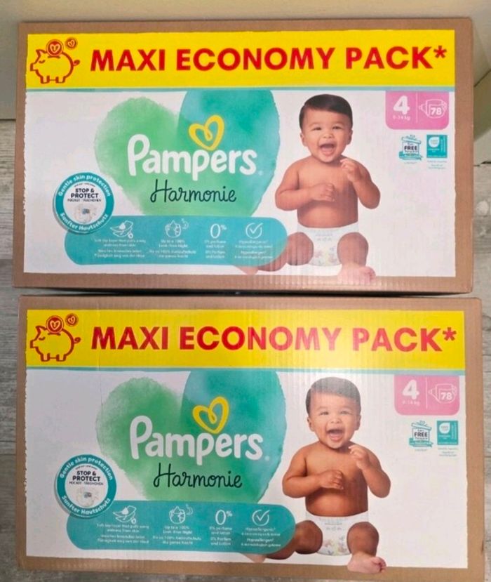 🍼 Pampers Harmonie – Taille 4 (9–14 kg) – Lot 2x78 couches – Neuf - photo numéro 1