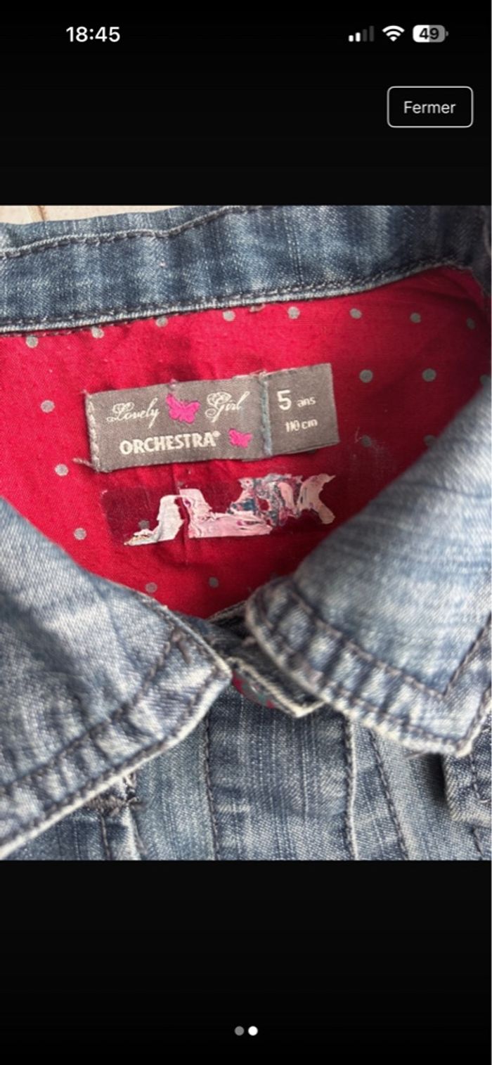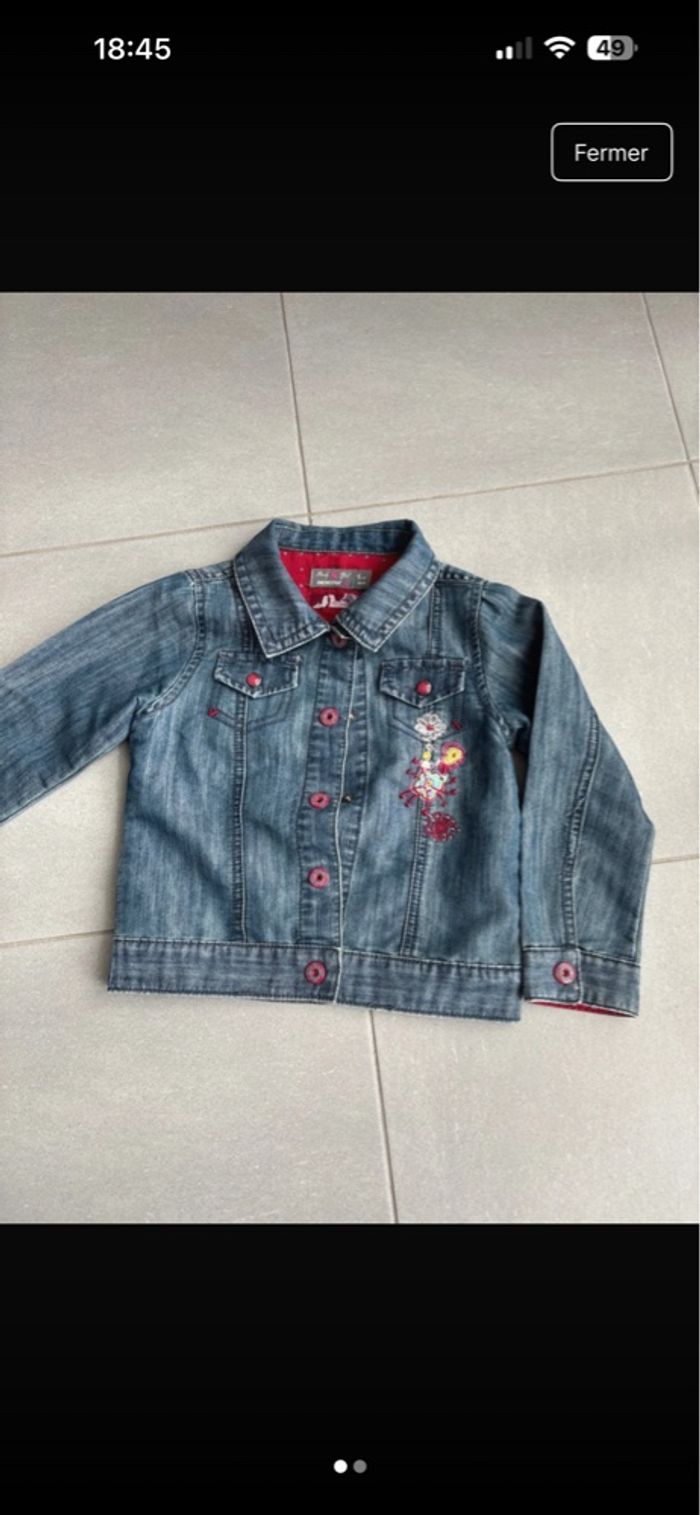 Veste fille 5 ans en très bon état. Il y a uniquement le reste d’étiquette où il y avait le prénom de ma fille.