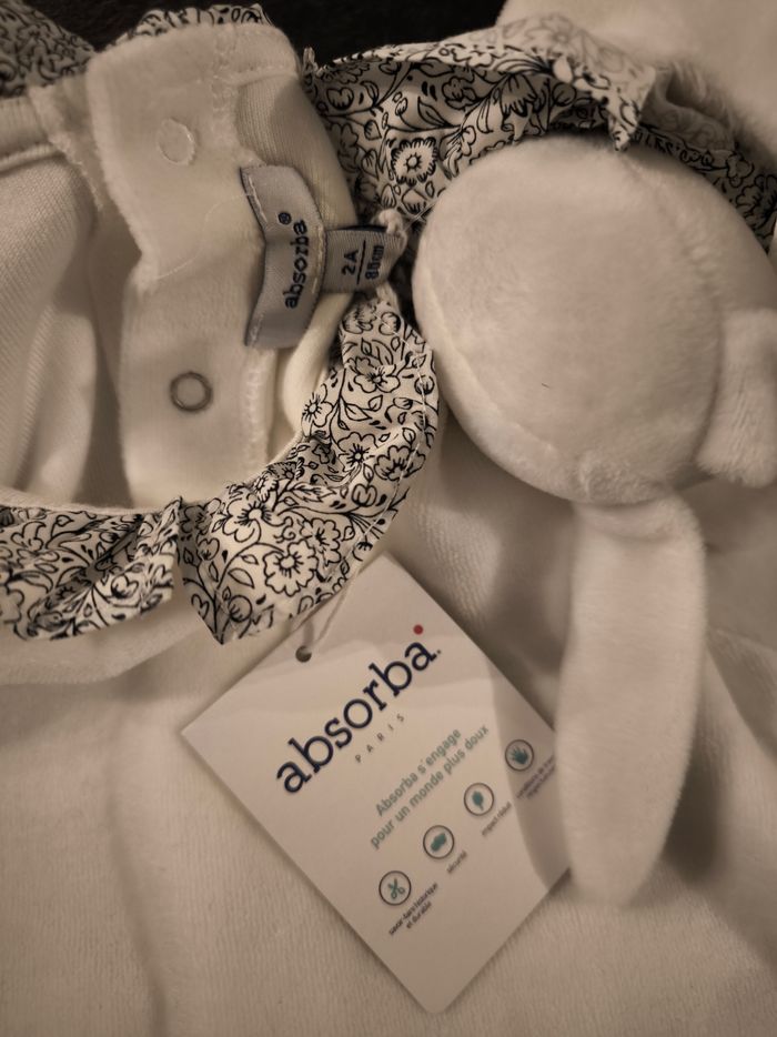 Neuf,marque Absorba. Blanc avec motifs et liserés bleu marine. Taille 2 ans. Idéal cadeau!