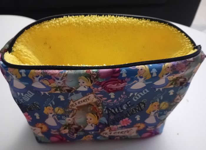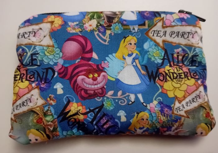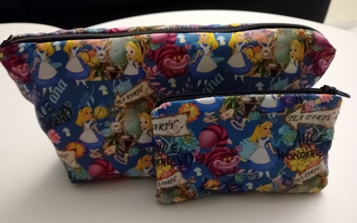 Lot Disney Alice au pays des merveilles composé D'une trousse de toilette ou à maquillage 21x13 cm intérieur éponge Un porte monnaie ou petite trousse plate assortie 12x8 cm