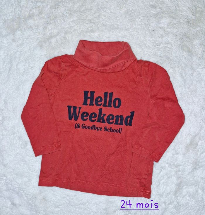 T-shirt manches longues col roulé garçon taille 24 mois en très bon état pour 3 euros.
