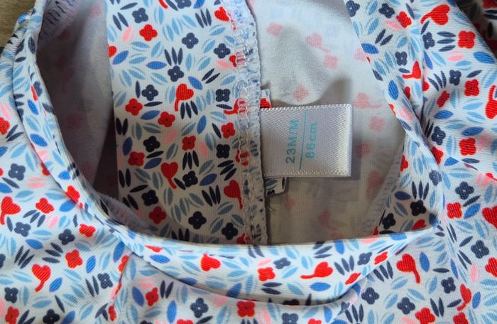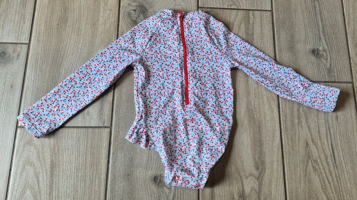 Maillot de bain une piece manches longues, fermeture zippé dans le haut du dos. Et boutons pression entre jambes Taille 23 mois Très peu porter #maillotdebainfille23mois