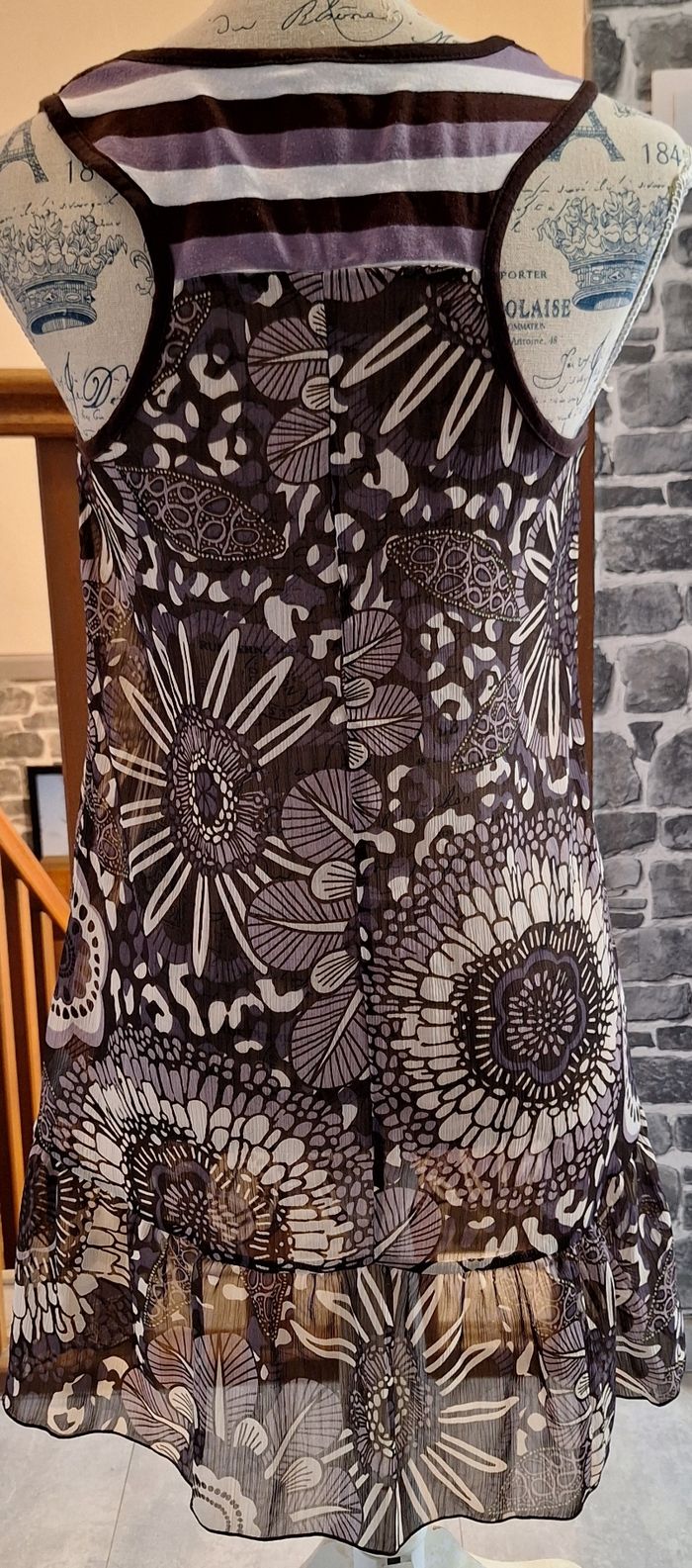 Longue tunique transparente à l'imprimé mauve et blanc - photo numéro 5
