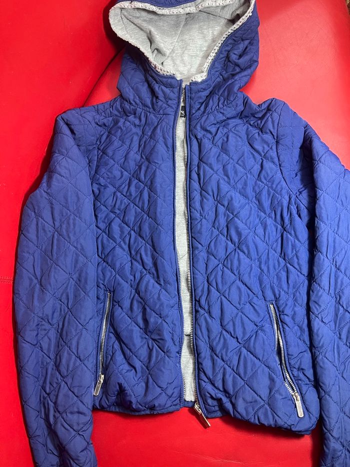 Veste léger pour enfant fille Avec capuche Marque Zara kids 11/12 ans ( 152cm ) 2 pouces extérieur Couleur bleu autour avec strass argenté En bonne état