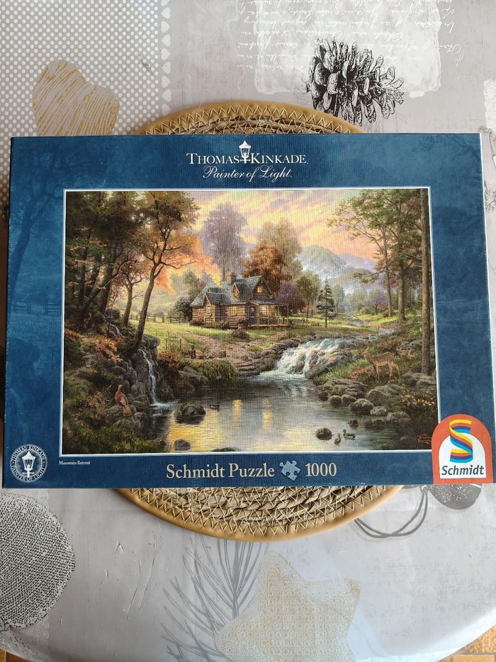 Univers : Paysage Thomas Kinkade Format : 1000 pièces Marque : Schmidt État : Très bon état, complet.