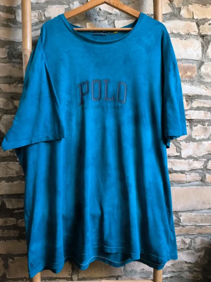 Tee shirt manches courtes Ralph Lauren Taille 3XB A été teint en bleu effet délavé / tie and dye En très bon état #jeyssihkavêtements #jeyssihkahomme Boite 28