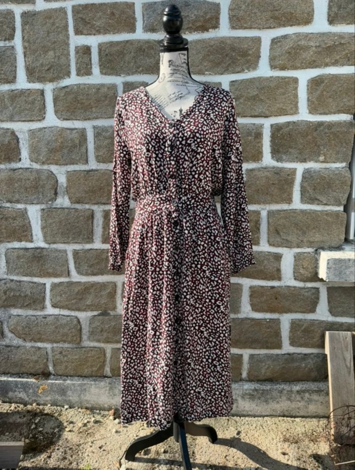 Robe longue fluide à motif léopard – Taille 40 Superbe robe longue à manches longues, fluide et très agréable à porter. Coupe confortable et féminine, idéale pour la mi-saison ou les soirées. Motif original façon léopard dans les tons rouge, noir et blanc – un style à la fois chic et tendance. En très bon état, peu portée. Taille 40. 📦 Envoi rapide et soigné N’hésite pas si tu as des questions ou besoin de plus de photos !