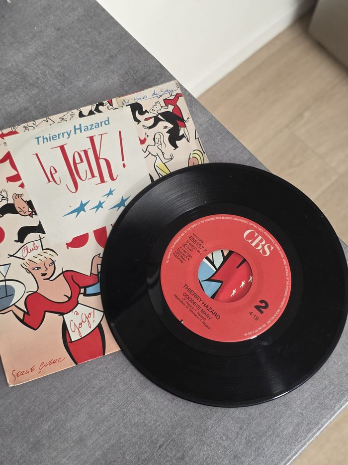 🎵 Thierry Hazard – Le Jerk ! (45 tours) Vinyle 45 tours de Thierry Hazard – Le Jerk ! Face A : Le Jerk (3'58) Face B : Goodbye Mary (4'19) Label : CBS Pochette illustrée Serge Clerc. Vinyle en bon état, complet avec sa pochette d’origine. Idéal pour collectionneur ou amateur de pop française des années 80. Envoi soigné Livraison dans toute la France. D’autres produits disponibles sur la page vendeur.