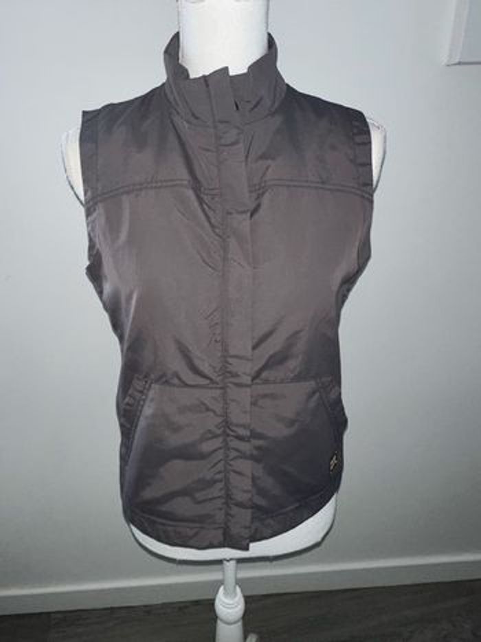 Veste matelassée - Excellent état - Taille 36 équivalent S Dimensions en bas de l’annonce - Gris mauve - Se ferme avec un zip - Style Cyberpunk Y2K - Sans manche - Poivre Blanc - Deux poches - Nylon et coton - Pas d’étiquette de taille Dimensions: - 48cm niveau aisselles - 55cm de long