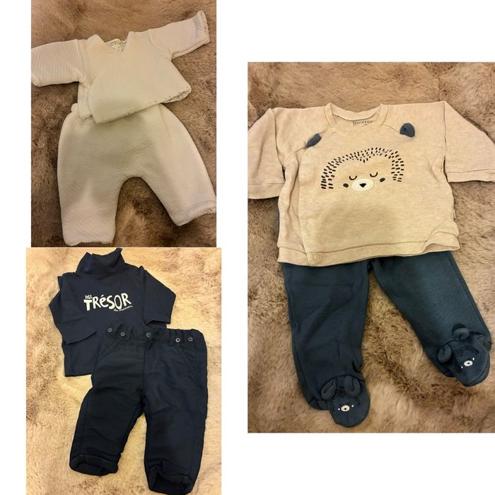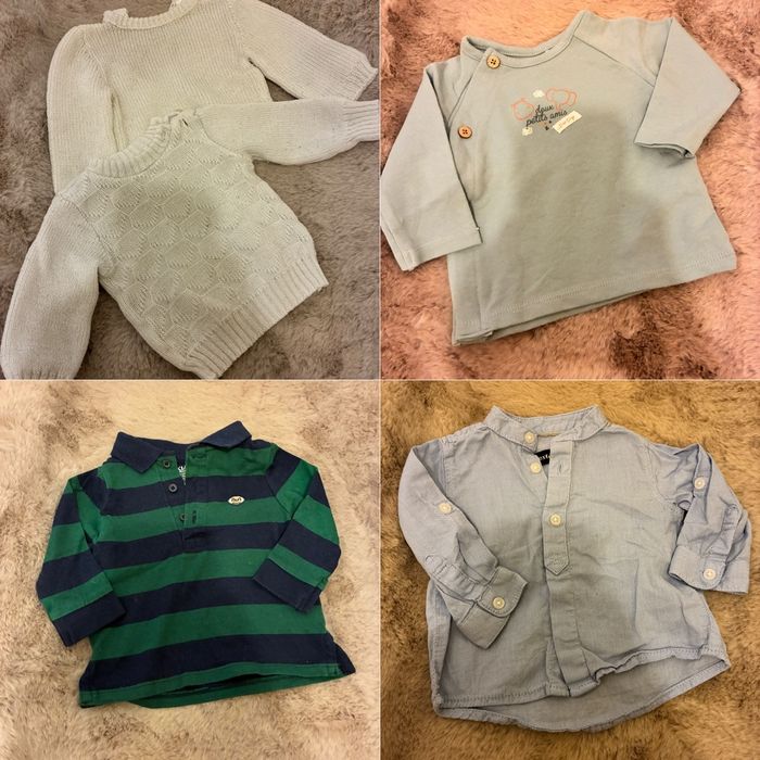 Lot de vêtements bébé 3 mois de 14 pièces à 30€ -2 ensembles -4 bas (dont un Jegging Levi’s) -4 hauts -2 pulls Marques : Kiabi , gémo , bout’chou, …
