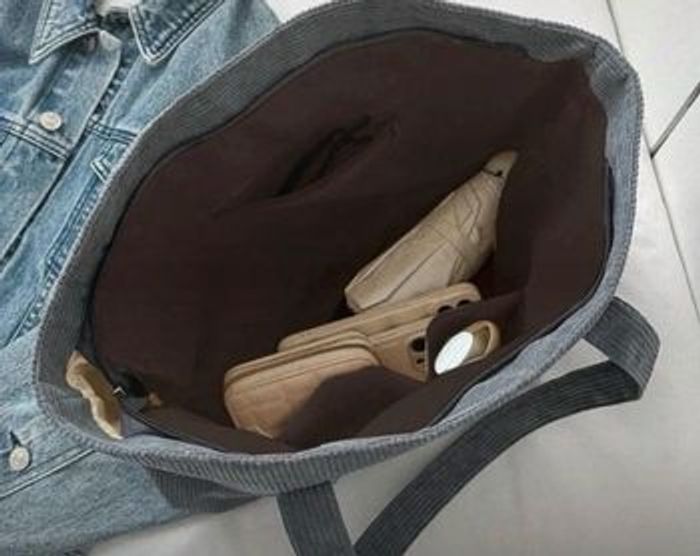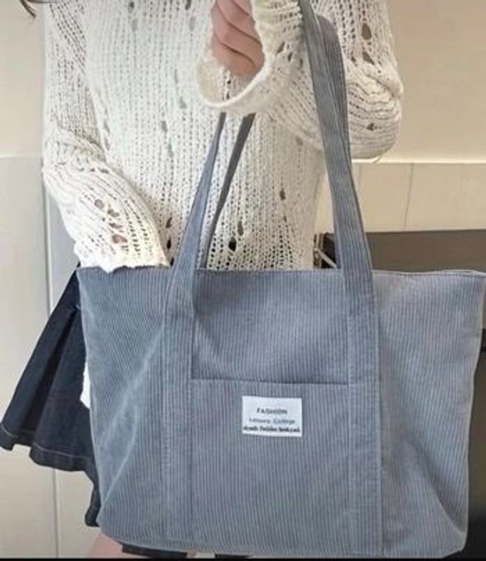 Sac bleu velours côtelé fin Fermeture éclair pour fermer le sac 1 poche extérieure Et 3 poches intérieurs deux petites et une plus grande qui ferme avec fermeture éclair #sac #velourscotele #sacamain #sacfourretout #fourretout #neuf #vert #mint #rose #bleu #noir