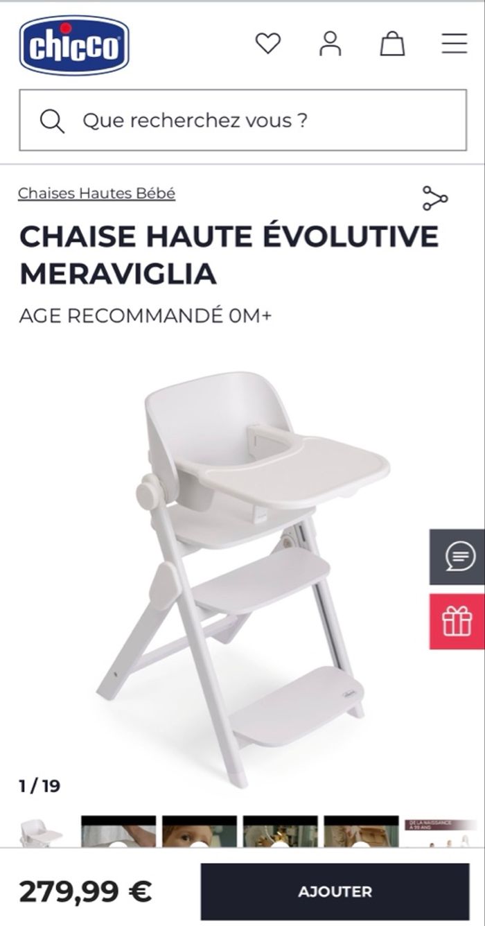 Bonjour , Je propose une chaise neuve évolutive ,encore dans le carton , suite à un cadeau de famille. Prix: proposé ( 150euros seulement). Prix magasin : 279€. Couleur : blanc. La chaise haute évolutive Meraviglia est homologuée dès la naissance et jusqu'à 150 kg ( version adulte ). Un seul carton avec l’ensemble des accessoires et kit.