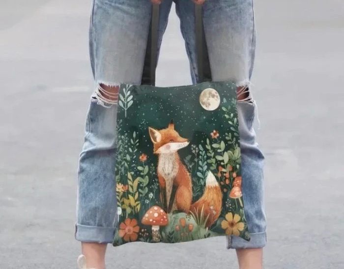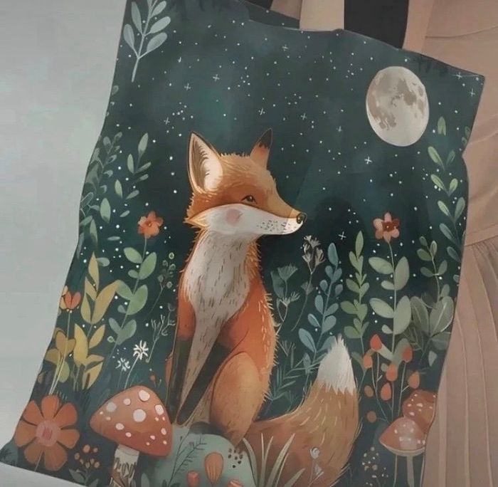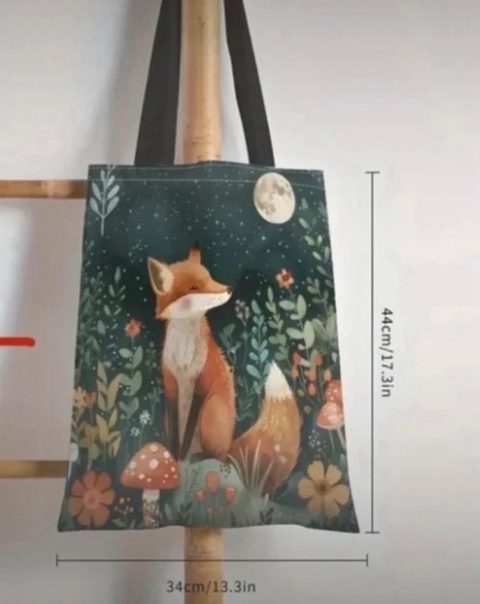 Sac fourre tout motif renard #renard #sac #velourscotele #sacamain #sacfourretout #fourretout #neuf #vert #mint #rose #bleu #noir